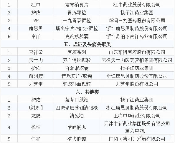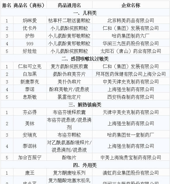 近日,由中国非处方药物协会公布的2014年度中国非处方药产品综合统计排名新鲜出炉。让我们来看一看各项排名: