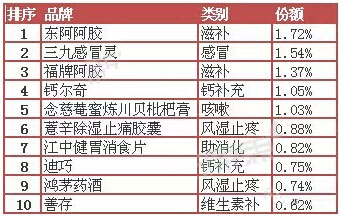 药店OTC产品畅销榜东阿阿胶居首位,品牌药扛大旗