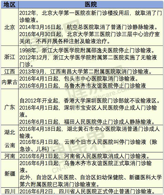 此外,包括北京、广东等多地的部分医院也“抢跑”取消门诊输液。