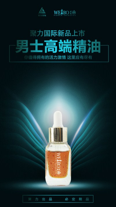 WEIBO劲能精油采用方形真空压缩无缝瓶体,外观高端大气,人体仿生硅胶吸头、太空玻璃滴管, 使用方便,手感舒适,是目前市场上不可多得的高端产品。