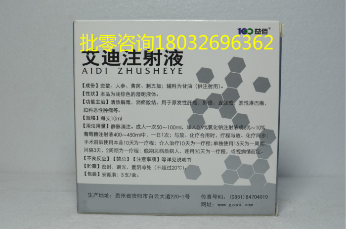 艾迪注射液由斑蝥、人参、黄芪和刺五加制成,具有清热解毒、化瘀散结的效果。可用于治疗原发性肝癌、肺癌、直肠癌、恶性淋巴瘤、妇科恶性肿瘤等。第*次使用这种药物偶尔会引起患者的脸红、荨麻疹、发烧等反应。很少病人有心悸、胸闷、恶心和其他反应。因此,**用药时,给药速度应为15滴/分钟。如果30分钟内未出现不良反应,给药速度应控制在50滴/分钟。