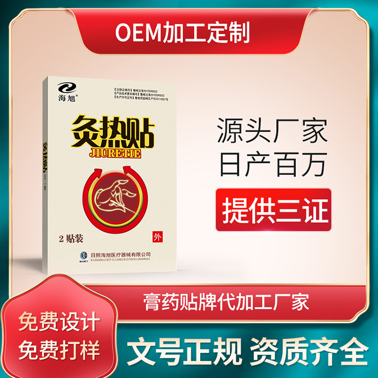 灸热贴加工厂家在多年来的发展中,看尽了城市的不断发展,随着大大小小的城市都已经越来越好,而生活在城市里的人也是压力越来越大,面对发展越来越快的城市,所有生活用品的价格都在上涨,不管是房价、车价、物价都是涨不停,越来越多的人由于生活和工作中的压力开始患有骨病等问题,而可以缓解骨病或是关节症状的灸热贴也成为了生活中必不可少的日常用品,并且在生活中深受大家的喜爱,所以灸热贴加工行业的前景**是充足的,这也正是很多客户寻找灸热贴贴牌加工厂家进行合作的原因,因为这样就可以生产出属于自己品牌的产品加入到灸热贴市场,让自己也在灸热贴市场博得一席之地。
