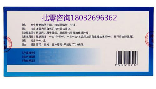 鸦胆子油乳注射剂是抗癌药,主要成分包括精制鸦胆子油、精制卵磷脂和甘油,这个药物是抗癌药,研究表明药物可以对机体的免疫力有一定的影响,可以增强体液免疫,对细胞免疫也有增强作用。除此之外,对肿瘤细胞有直接杀伤的功效,还能够对维持人体代谢功能的骨髓,也有一定的保护作用,能够升高白细胞,对于肿瘤患者的放化疗,也有一定的辅助治疗的作用。在临床上主要用于癌症的辅助治疗,用于肺癌脑转移以及消化道肿瘤起到抗肿瘤的功效。