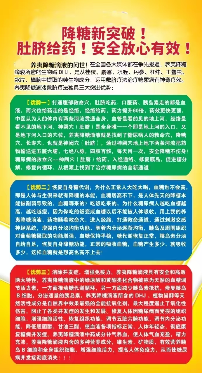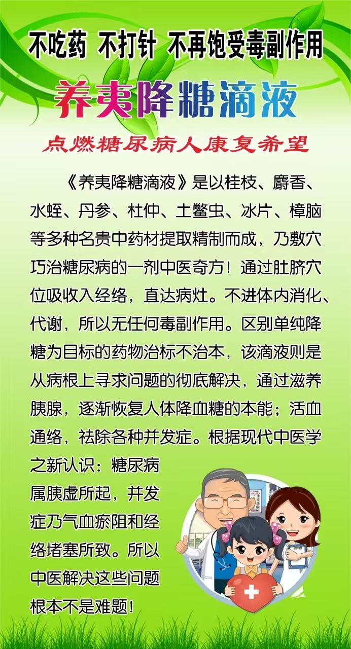 本网页所展示的有关【降糖滴液_洗液/滴剂_降糖滴液招商部】的加盟项目信息/图片/参数等由1168医药保健品招商网的会员【降糖滴液招商部】提供,由1168医药保健品招商网会员【降糖滴液招商部】自行对加盟信息/图片/参数等的真实性、准确性和合法性负责,本平台(本网站)仅提供展示服务,请谨慎交易,因交易而产生的法律关系及法律纠纷由您自行协商解决,本平台(本网站)对此不承担任何责任。您在本网页可以浏览【降糖滴液_洗液/滴剂_降糖滴液招商部】有关的加盟信息/图片/价格等及提供【降糖滴液_洗液/滴剂_降糖滴液招商部】的商家公司简介、联系方式等信息。
