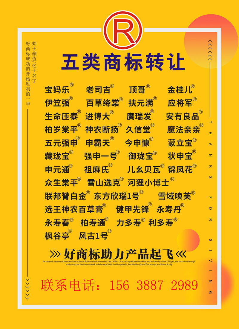 本网页所展示的有关【5类商标低价转让_其他_蚕蛹补肾招商部】的加盟项目信息/图片/参数等由1168医药保健品招商网的会员【蚕蛹补肾招商部】提供,由1168医药保健品招商网会员【蚕蛹补肾招商部】自行对加盟信息/图片/参数等的真实性、准确性和合法性负责,本平台(本网站)仅提供展示服务,请谨慎交易,因交易而产生的法律关系及法律纠纷由您自行协商解决,本平台(本网站)对此不承担任何责任。您在本网页可以浏览【5类商标低价转让_其他_蚕蛹补肾招商部】有关的加盟信息/图片/价格等及提供【5类商标低价转让_其他_蚕蛹补肾招商部】的商家公司简介、联系方式等信息。