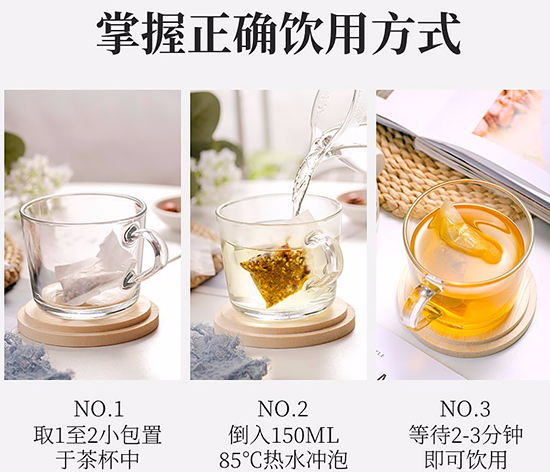 饮用方法:取本品1-2小包开水冲泡片刻即饮用