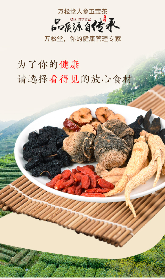 本网页所展示的有关【人参五宝茶_药食同源_武汉万松堂生物医药有限公司】的加盟项目信息/图片/参数等由1168医药保健品招商网的会员【武汉万松堂生物医药有限公司】提供,由1168医药保健品招商网会员【武汉万松堂生物医药有限公司】自行对加盟信息/图片/参数等的真实性、准确性和合法性负责,本平台(本网站)仅提供展示服务,请谨慎交易,因交易而产生的法律关系及法律纠纷由您自行协商解决,本平台(本网站)对此不承担任何责任。您在本网页可以浏览【人参五宝茶_药食同源_武汉万松堂生物医药有限公司】有关的加盟信息/图片/价格等及提供【人参五宝茶_药食同源_武汉万松堂生物医药有限公司】的商家公司简介、联系方式等信息。