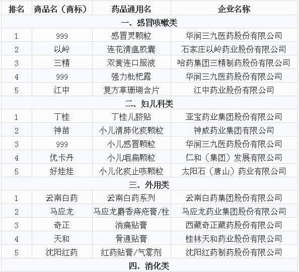 近日,由中国非处方药物协会公布的2014年度中国非处方药产品综合统计排名新鲜出炉。让我们来看一看各项排名: