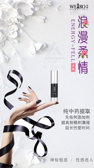 WEB威勃男士劲能喷剂,拥有独家专利配方,采用纯植物提取,安全可靠,是一款能够达到优秀**效果的精华液,增强男性荷尔蒙,快速激活性动力。降低龟头敏感度,提高射精刺激阈,大大**性生活时间 。同时对皮肤温和,无任何刺激,无任何副作用,更**,让您的性福更加舒适愉悦。