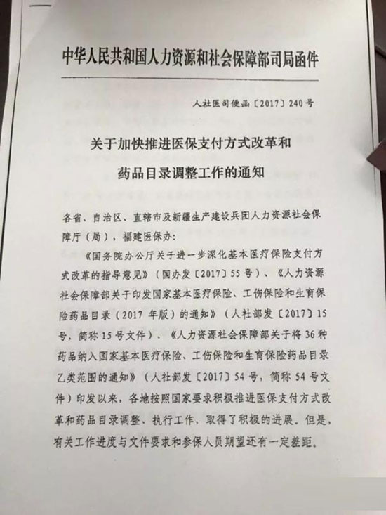 近日,一份由国家人力资源和社会保障部医疗保险司起草的《关于加快推进医保支付方式改革和药品目录调整工作的通知》(人社医司便函(2017)240号)在业界不胫而走。