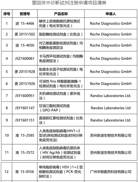 今天,食品药品监管总局发布公告显示,自2016年12月13日—2017年12月15日,1年时间里,共有169家企业撤回了261个医疗器械注册申请项目。其中42家企业撤回105个体外诊断试剂注册申请项目,127家企业撤回156个其他医疗器械注册申请项目。