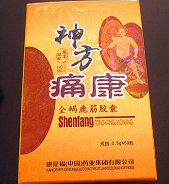 神方痛康胶囊是保健食品,不属于药。神方痛康胶囊主要成分为鹿筋,为鹿科动物梅花鹿或马鹿四肢的筋。功效:补肾阳、壮筋骨。主治:治劳损过度、风湿关节痛、子宫寒冷、阳痿、遗精。