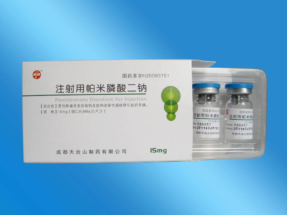 注射用帕米膦酸二钠主要由帕米膦酸二钠组成,辅料为甘露醇和磷酸。适用于骨痛、癌痛、高钙血症并发恶性肿瘤和溶骨性癌转移引起的癌痛。