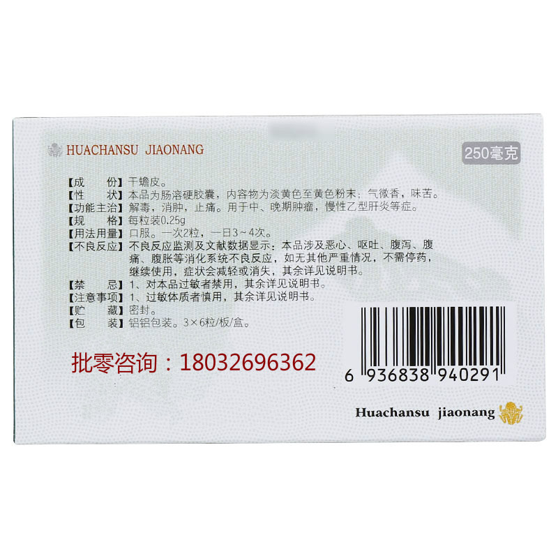 华蟾素肠溶胶囊又叫华蟾素胶囊,本品的主要成分是干蟾皮提取物,不但能够抗病毒、抗肿瘤,还具有解毒、消肿、止痛的作用。因为华蟾素片可以调节机体免疫系统,提高人体的免疫功能,从而增强抵抗力。这样不但可以加大对抗肿瘤的能力,而且协同放化疗作用,华蟾素肠溶胶囊还能减毒增效,从而降低临床不适,包括疼痛等表现。