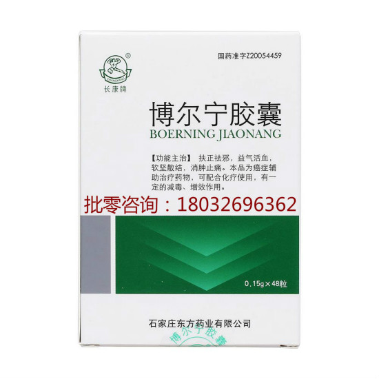 首先我们来了解一下博尔宁胶囊的主要成分:是由炙黄芪、女贞子(酒制)、光慈菇、马齿苋、重楼、龙葵、紫苏子(炒)、鸡内金(炒)、大黄、冰片、僵蚕(炒)多种中草药制成。可以扶正祛邪、益气活血、软坚散结、消肿止痛。博尔宁胶囊为癌症辅助治疗药物,可以配合化疗使用,有一定减毒、增效作用。