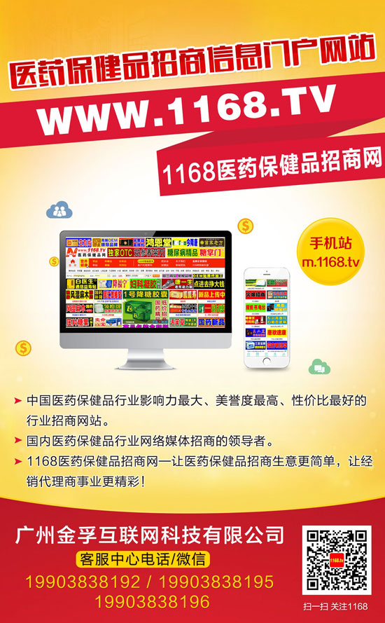 1.凡本网注明“来源:1168医药招商网”的所有作品,均为广州金孚互联网科技有限公司-1168医药招商网合法拥有版权或有权使用的作品,未经本网授权不得转载、摘编或利用其它方式使用上述作品。已经本网授权使用作品的,应在授权范围内使用,并注明“来源:1168医药招商网http://www.1168.tv”。违反上述声明者,本网将追究其相关法律责任。