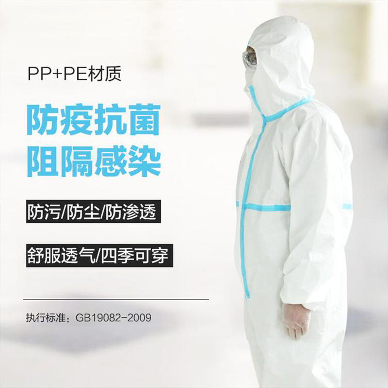 为了保证防护服的安全可靠性,防止小的缺陷对医护人员的生命造成威胁。防护服由连帽上衣、裤子组成,可分为连身式结构和分身式结构供临床医务人员在工作时接触到的具有潜在感染性的患者血液、体液、分泌物等提供阻隔、防护用。针线缝合采用针缝加胶合或做折边缝合,缝合的针距每3cm应为8针-14针,线迹应均匀、平直,不得有跳针。