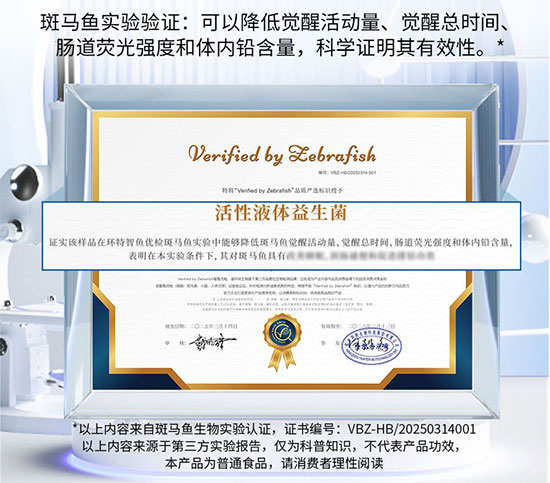 每瓶含500亿活菌,菌株经耐胃酸耐胆汁筛选。斑马鱼实验研究显示:对斑马鱼有助于润肠通便、改善睡眠。客户喝了反馈好,自然回来复购。